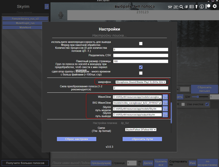 - xvasynth_folder = C:\xVASynth (Путь до папки с программой синтеза речи)
