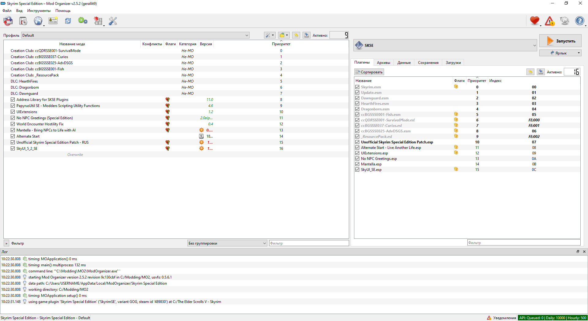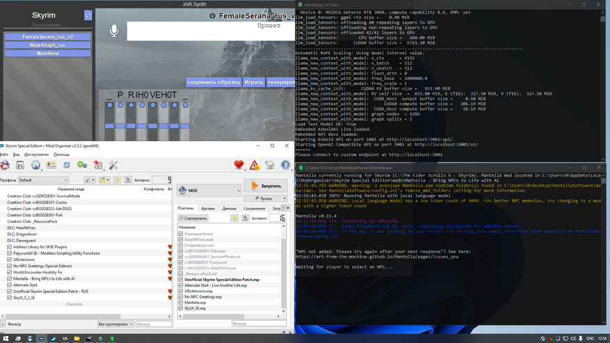 Запускаем игру через Mod Organizer 2, предварительно выбрав профиль SKSE. Проверяем работоспособность ChatGPT и голосового синтеза.