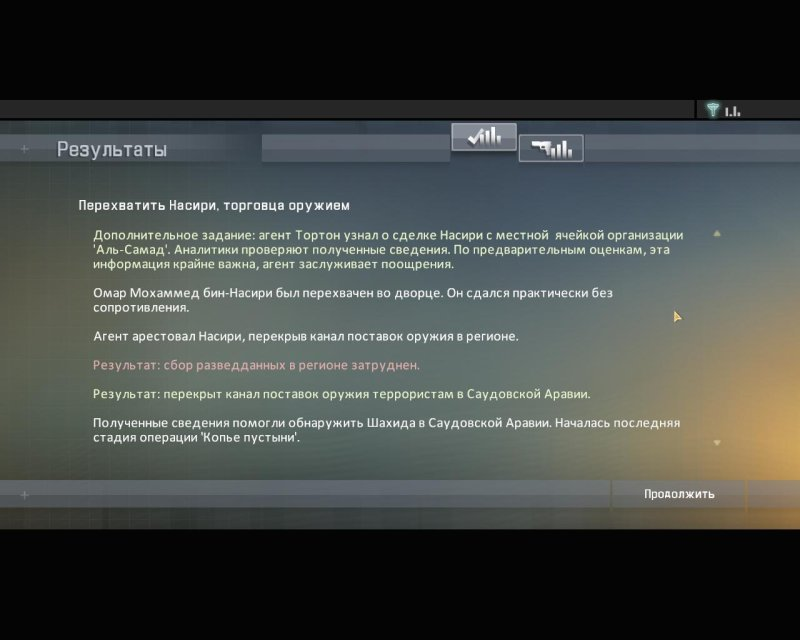 После завершения операции игроку показывают таблицу со статистикой и краткое описание того, как его действия и разговоры на задании повлияли на глобальную историю. Так же в статистике указывается сколько целей вы выполнили, столько врагов убили, сколько вырубили, сколько детей остались сиротами и во столько вашим противникам обошлось лечение. Интересно, что изначально разработчики не планировали показывать игроку статистику миссии, пока один из тестеров не увидел её с помощью бага.