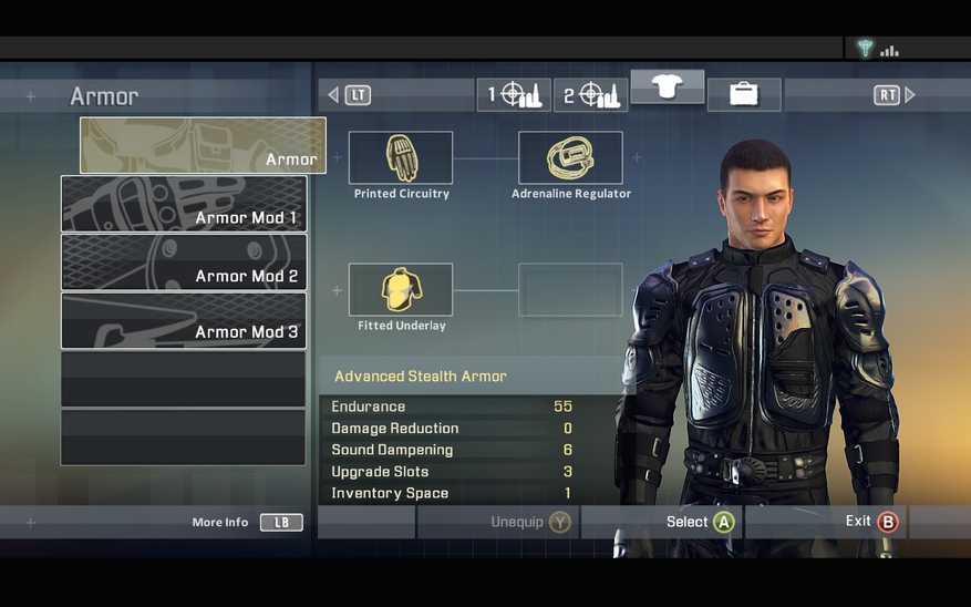 В общем прокачка в игре не бесполезная во всех ветках и позволяет игроку создать свой уникальный стиль прохождения. Единственное, что раздражает и вводит в недоумение это – непонятные характеристики. Например, модификации брони, которые уменьшают обзор противников, но на сколько уменьшают неясно. Повышение эффективности лечения или урона в ближнем бою, тоже не имеют точных значений. Такая размытость неприятна, но не критична.