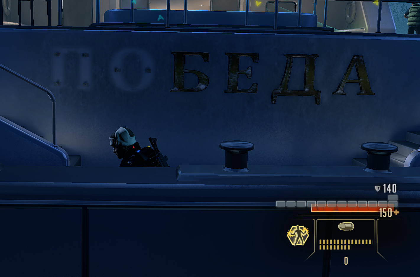 Игра даже сейчас выглядит довольно неплохо, только освещение очень слабо настроено. Внешний вид локаций, персонажей, оружия и рядовых противников на хорошем уровне. Особенно порадовали операции в Москве, где можно было увидеть интересные плакаты, бандитов в спортивках и яхту поБЕДА.