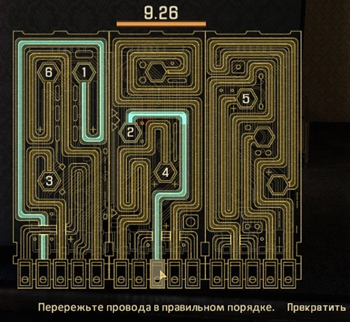 Взламывая сигнализацию (турель, электрическую дверь) вам необходимо в правильной последовательности перерезать переплетённые провода.