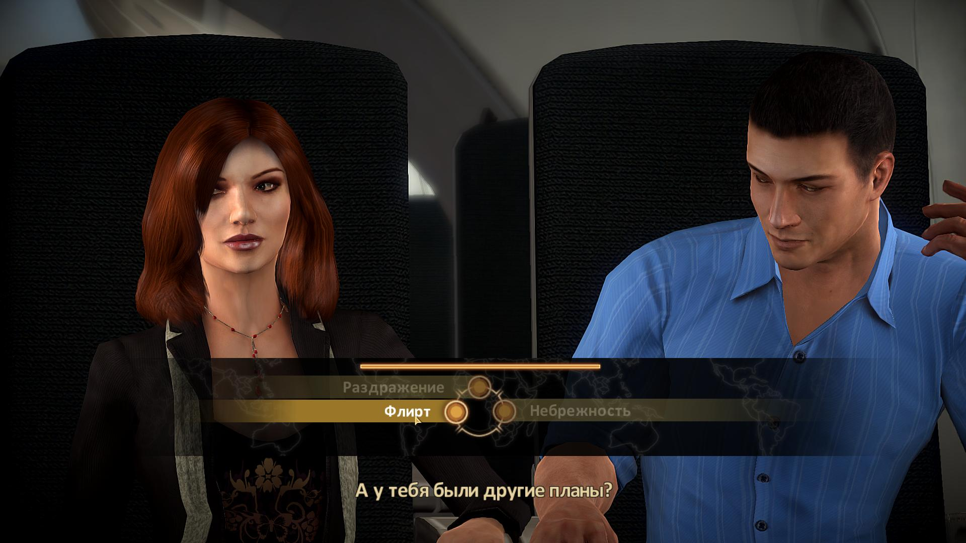 В игре реализована интересная система диалогов, как в Масс Эффект. Вместо чётких ответов, вы можете выбирать только «тип» фразы. Майкл может ответить агрессивно, дружелюбно, насмешкой, профессионально или даже пофлиртовать с собеседником. От ваших выборов в диалогах зависят отношения с персонажами, которые могут дать агенту пассивный бонус на миссии или немного поменять сюжет.