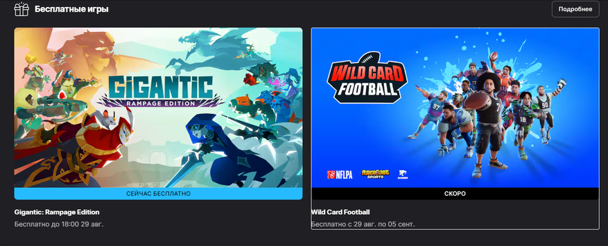 Тем, кто еще не успел воспользоваться текущим предложением, стоит поторопиться: до начала раздачи Wild Card Football у вас есть шанс бесплатно забрать Gigantic: Rampage Edition. Это улучшенная версия популярного командного экшн-игры Gigantic, где игроки сражаются в масштабных битвах, управляя уникальными героями с особыми способностями. В этой версии добавлены новые герои, расширенные карты и усиленные способности, что делает игру еще более захватывающей и динамичной.