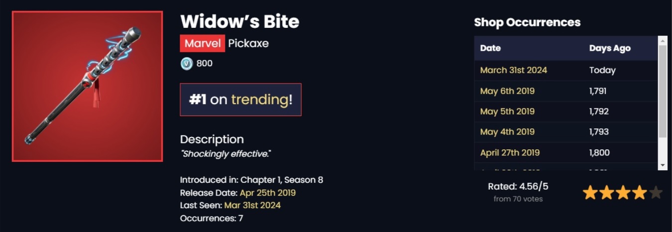 В Fortnite появилась кирка Черной Вдовы, которая на протяжении нескольких лет отсутствовала во внутриигровом магазине.
