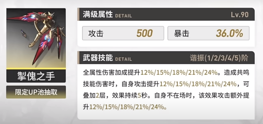- Когда навык резонанса наносит урон, АТК повышается на 12%, эффект складывается 2 раза и длиться 5 секунд.