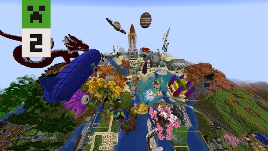 В честь юбилея франшизы Minecraft, игра получила новую карту, созданную силами более чем 100 пользователей. Она включает в себя множество различных локаций, среди которых можно обнаружить: маяк, островной город, бункер Мунди, «Спейс шаттл» и прочее.