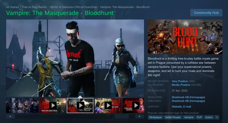 Так, например, Vampire: The Masquerade — Bloodhunt, в котором раньше было множество видеороликов в начале строки, теперь выглядит так: