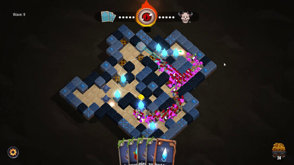 По ходу игры нашей задачей будет спасать сундук героя. Реализованы достаточно оригинальные геймплейные механики. Враги атакуют волнами, как в башенных защитах и положено. А мы перед боем имеем несколько очков действий, которые тратим на расширение подземелья и, фактически, на формирование «коридоров смерти» для врагов, заранее продумывая и создавая пути их движения. Кроме того, реализована необычная фишка — стены подземелий, которые мы копаем, неоднородны и состоят из разных видов блоков. Некоторые при разрушении дают защитные башни, а другие — ловушки. В общем, строительной мысли есть где разгуляться. Да ещё и постройки можно улучшать в будущем.