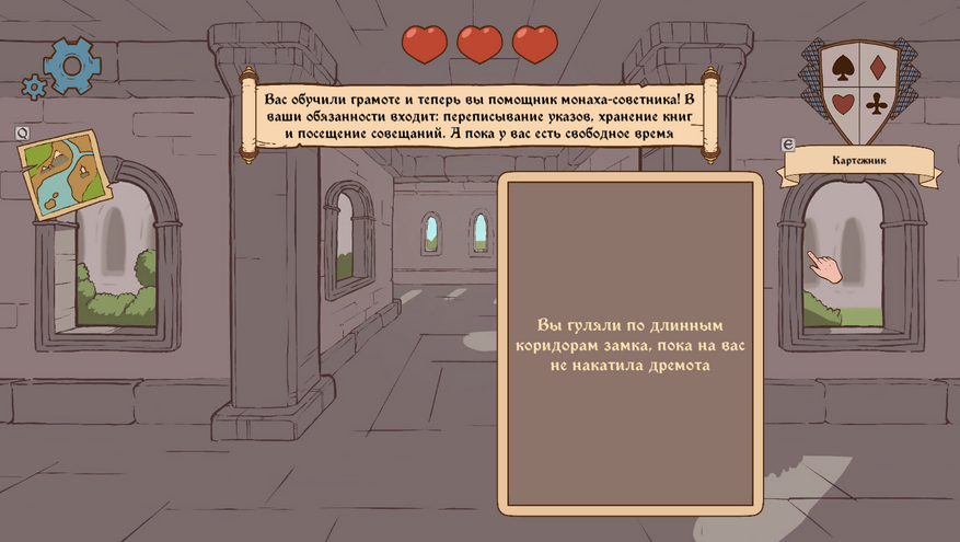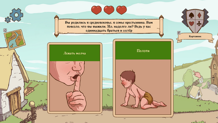 У главного героя есть количество жизней, стандартное количество — 3 сердечка. После определенных выборов будут следовать болезненные для героя моменты, например, его может поколотить отец за проступок, или же герой может утонуть в речке. Данные последствия отнимают сердечки, после потери всех жизней Вы возвращаетесь к контрольной точке.