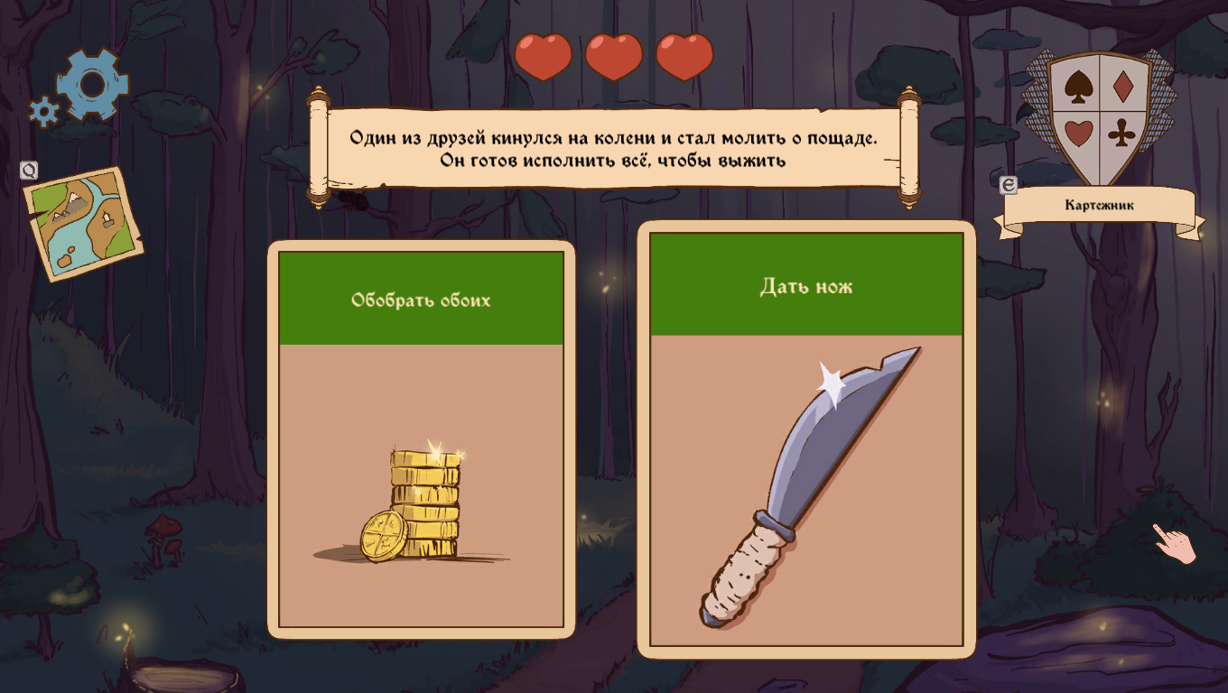 Плюс этой игры состоит в том, что текста не слишком много, и она не успевает надоесть. С другой же стороны, иногда не хватает деталей, что делает непонятным значение некоторых фраз. Допустим карточка «Сбежать» очень кратко звучит, а куда вообще сбежать-то и каким образом? Подобные недосказанности могут иногда злить или вводить в недоумение.