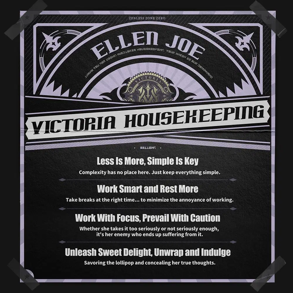 Эллен работает горничной в агентстве «Горничные Виктории» вместе с другими персонажами, такими как Корин Викс, Вон Ликаон и Александрия Себастьян.
