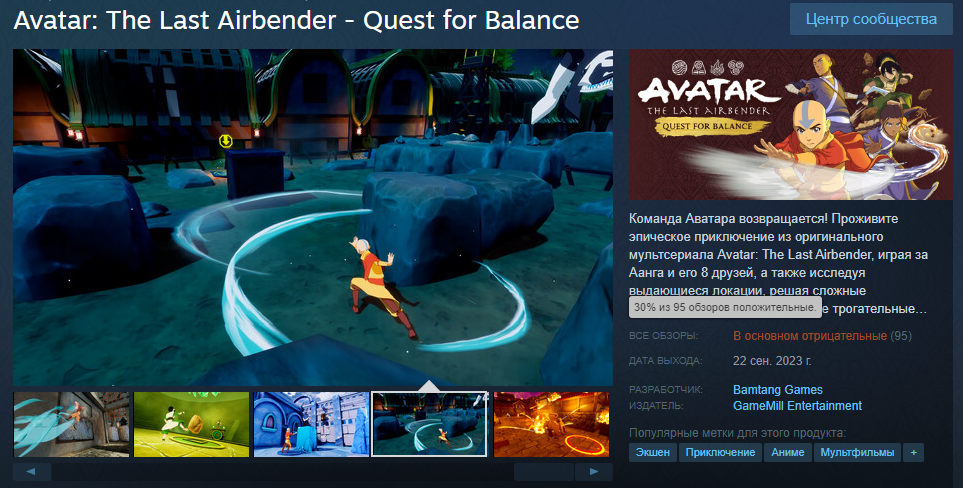 Во-вторых, если подумать, у нас никогда не было не то что полноценного AAA-проекта по этой вселенной, но и вообще, сколько-нибудь качественного. Всё что мы имели, это копеечная игра про Корру от Platinum Games (если не ошибаюсь) и PSP-тайтлы. Ну, а прошлогодняя Quest for Balance (вышла, кстати, в мой день рождения) и вовсе оказалась безыдейным лютым трэшем с соответствующей оценкой в Steam.