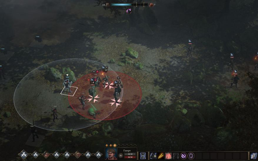 В бою разрешается выбрать любого персонажа, который ещё не совершил действие в текущем раунде. А вот противник ходит в порядке инициативы. Немного читерский подход, но зато простора для творчества выходит немного побольше. Да и бои с таким подходом не так сильно надоедают. Порадовало, что грязь замедляет движение, и через огонь так просто не пройти. Также в грозу по области может ударить молния, а в пещерах случаются обвалы. Вроде бы мелочь, а приятно.