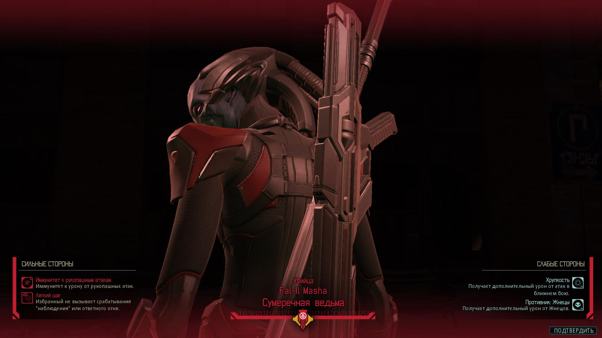 (Личная заметка: За жнеца очень удобно вытаскивать своих бойцов из тюрем и выкрасть колбу с реагентом в самой первой сюжетной миссии)