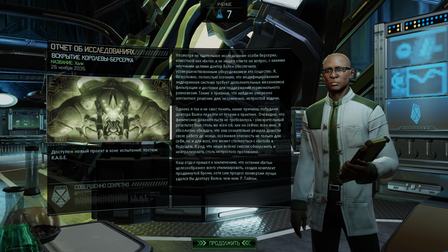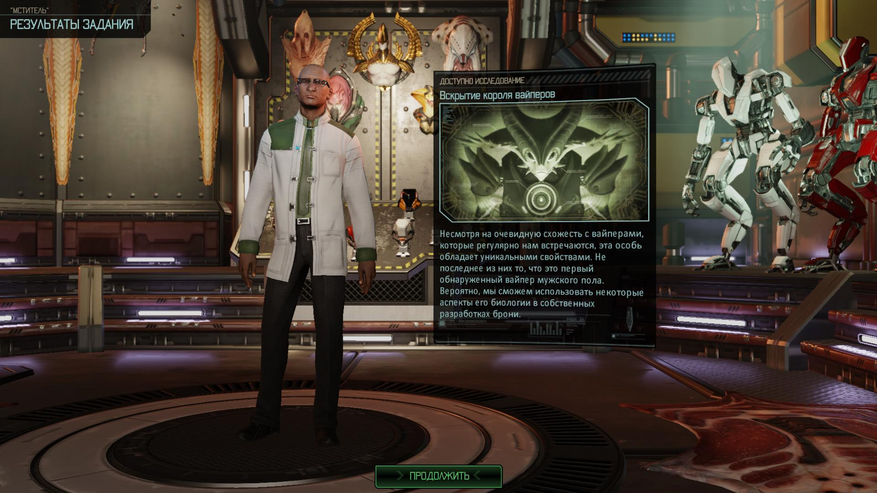 Как я говорил в обзоре на XCOM: Enemy Within есть у меня стойкое подозрение, что доктор Вален отнюдь не человек. Давайте подумаем, насколько велики шансы даже у самого гениального учёного без топового оборудования вывести отдельную особь пришельцев, пусть и имея опыт работы с представителями противоположного пола данного вида? Отнюдь не велики. Но для чего она создала их? Тут у меня есть две версии. Первая заключается в том, что она учёная и я бы даже сказал безумная учёная, которая не видит ничего, кроме потенциальных научных прорывов. Зная её по первой части, смело могу сказать, что это вполне в её духе. Второй же вариант заключается в том, что данные короли и королева появились на сцене сугубо после освобождения командующего. Учитывая характер доктора и вероятно некоторую симпатию-благодарность к командующему, ведь он неоднократно предоставлял ей новые образцы для экспериментов, есть шанс что она вывела этих созданий специально чтобы они достались ему с целью простимулировать научные разработки под крылом своего бывшего начальника. Плюс саму доктора Вален мы так и не нашли и оттого у меня есть подозрение-надежда что мы увидим её в третьей части. Надеюсь, она таки выйдет. Чуть не забыл. С королей и королевы вам выпадут неплохие шкурки, в которые можно будет завернуть ваших солдат. Очень рекомендую к использованию.