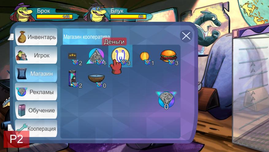 У фантомов есть своё меню, где им доступен инвентарь, настройки коопа, магазин теневой рекламы, журнал с перечнем локаций и числом найденных/ не найденных теневых реклам на них (упрощает поиск), обучение, куда вносятся все пометки по возможностям коопа. В меню коопа можно выбрать образ одного из двух протагонистов, сменить цвет костюма (можно и быстрыми клавишами). В инвентарь падают расходники (лечилки, энергетики) и деньги — всё это призраки могут использовать. В магазине, как я и говорил, можно купить прокачку, флаеры, деньги, лечилки и энергетик. В настройках коопа можно выставить фрэндли — фаер (бить/ не бить компаньона и наносить ему урон при желании), откорректировать клавиши контроллера, вибрацию. Играть можно всем на контроллерах либо протагонистом играть на сенсоре, а остальным на контроллерах.