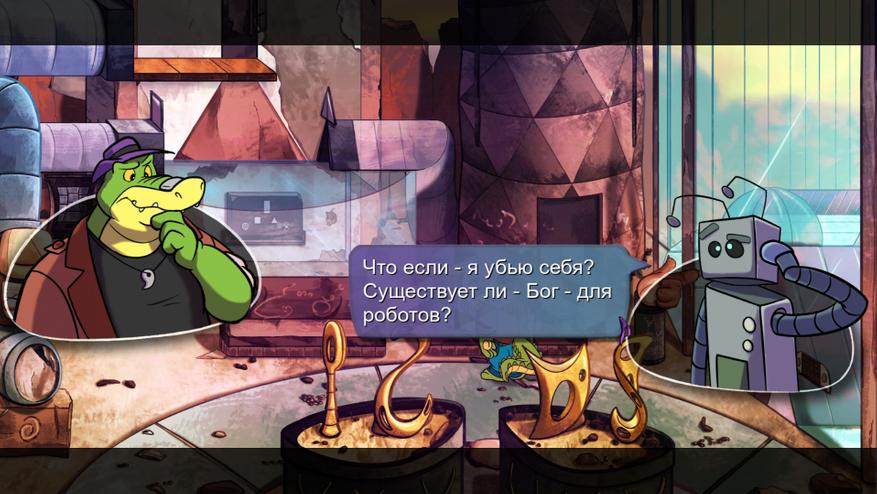 BROK the InvestiGator — это игра в жанрах point & click и beat ‘em up. Разработана и издана независимой французской игровой студией Cowcat Games. Сделано данное произведение с помощью GameMaker Studio 2. Финансирование её создатель искал через Kickstarter. 26.08.2022 состоялся релиз в Steam и GOG, 02.09.2022 г. на itch. io, 04.10.2022 — версии для macOS и Linux, 01.03.2023 — Switch, PS4, PS5, Xbox One, Xbox Series X/S, а 21.02.2024 игра добралась до android и iOS. Озвучка английская, интерфейс и субтитры переведены на 11 языков, перевод удобоваримый. А вот меню картинками требует привыкания. На Aurora Store, RuStore, itch. io мобильной версии нет. На сайте разработчиков её также, к сожалению, не купить. Тем, у кого есть проблемы с приобретением в Google Play, придётся искать BROK the InvestiGator на сами знаете каких сайтах — это не сложно.
