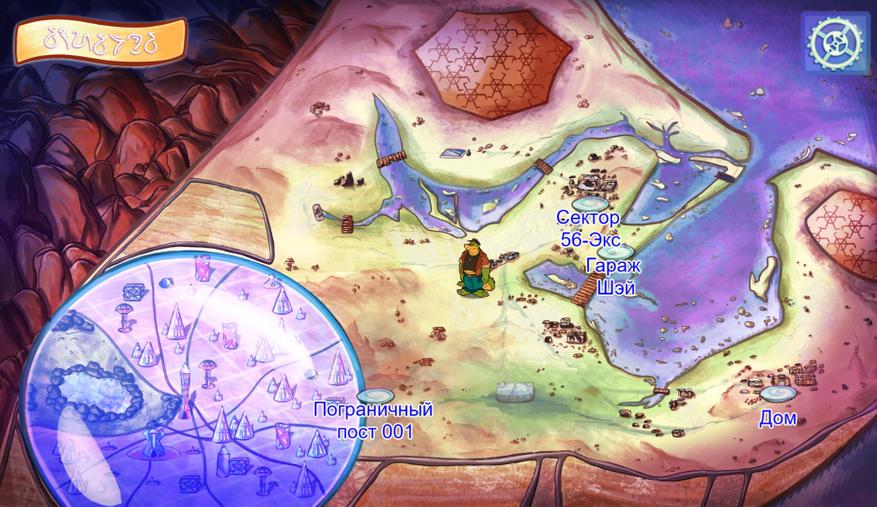 Игра поделена на небольшие локации, доступ к которым мы получаем на глобальной карте постепенно по ходу прохождения. На доступные территории можно вернуться в любой момент. Каждая локация состоит обычно из нескольких помещений с переходами между ними через чёрный экран. Помещения содержат множество деталей, где каждая трещинка в стене может оказаться важной сюжетной активностью либо точкой, открывающей доступ к ценным ресурсам. Если лень высматривать эти мелочи и тыкать пальцем в каждый угол, то есть возможность подсветить всё важное. Чтобы мы не ломали глаза, уже на первой локации персонажу предоставляют увеличительное стекло, которое приближает выбранное изображение. В режиме point & click персонаж перемещается не стиками и кнопками, а нажатием. Куда нажали на экране — туда и пошёл.