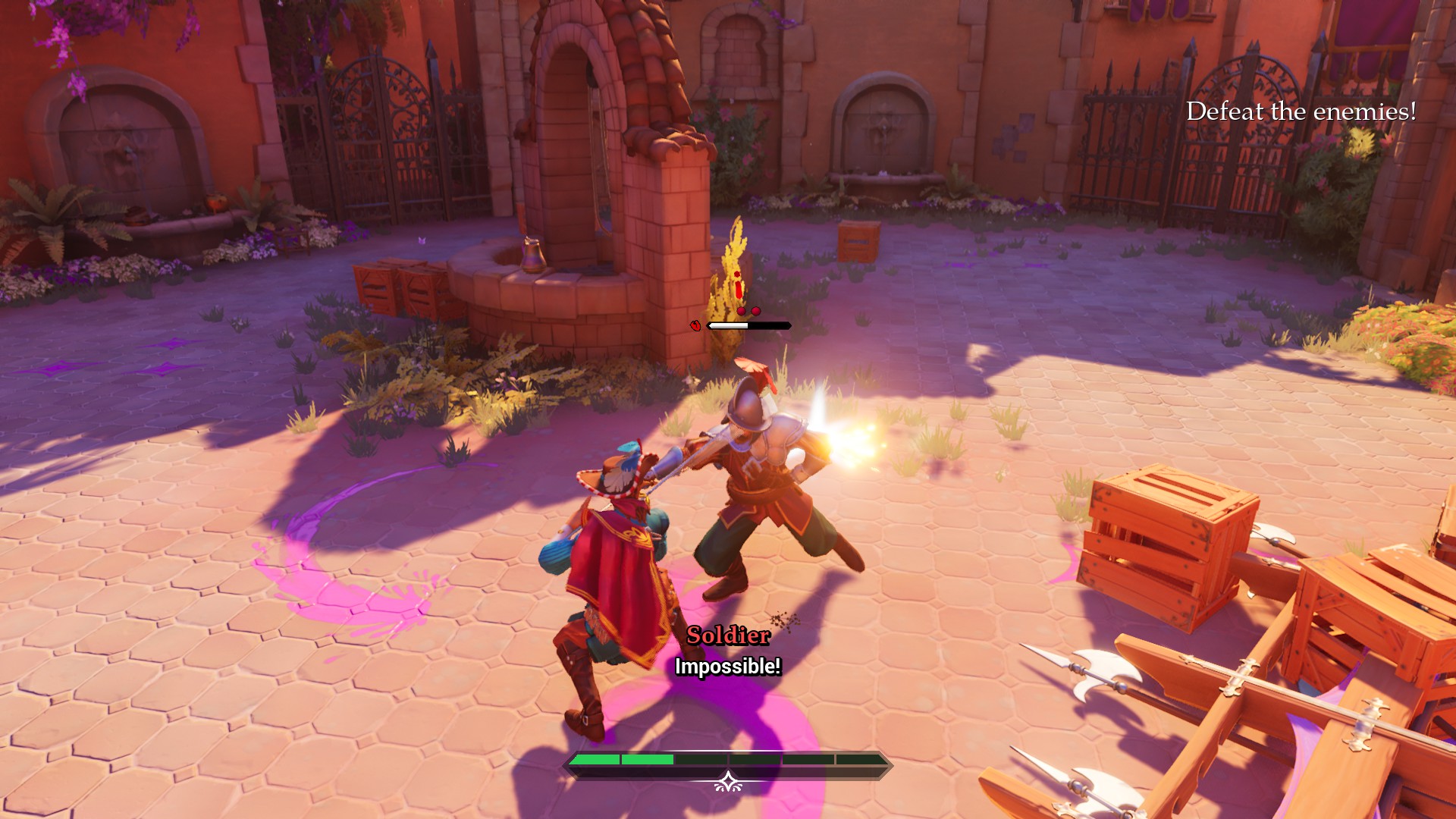Враги довольно разнообразные и к некоторым нужен особый подход, но, опять же, взаимодействие с окружением будет являться универсальным инструментом для решения патовых ситуаций. Если новобранцев можно просто затыкать своей шпагой, то с остальными придется поплясать в поединке парируя их атаки, чтобы нанести урон, когда они откроются или ослабнут. Боссы ничем особо не выделяются, а содержат в себе набор элементов нескольких видов противников, с которыми уже приходилось сталкиваться. Непродолжительность игры спасает малое разнообразие боевой системы, из-за этого она может не успеть приесться.