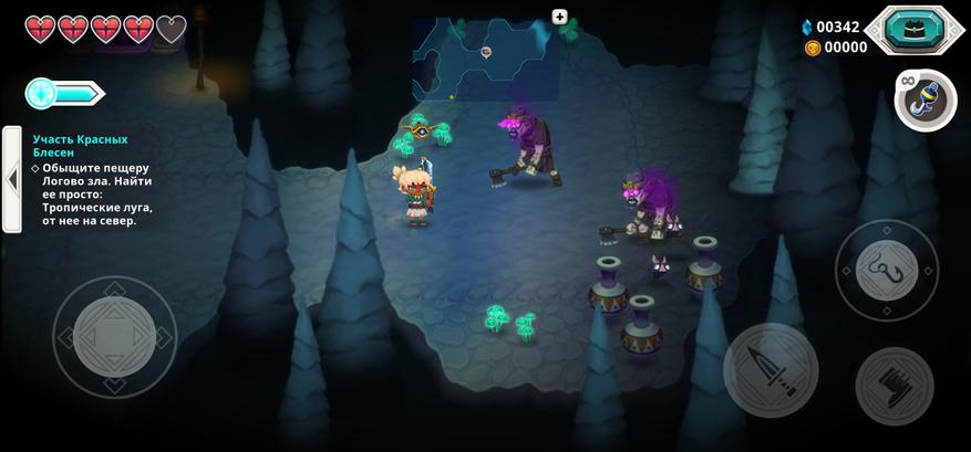 Визуал является самой слабой, посредственно реализованной частью в игре. Он идеально работает геймплейно, он милый и в целом не раздражает. Нормально проделана работа с точки зрения сочетания цветов. Враги, окружение, объекты, протагонист, ловушки, визуализация ударов — все эти элементы в разгар горячих сражений не сливаются, не застилают взор, не мешают друг другу. Тут нет никаких вопросов. Есть и приятные эффекты, типа меняющейся дымки над морем, частиц, витающих в воздухе, пыли из-под сапог протагониста. Однако у игры словно нет своего лица. Визуал, модельки, артдизайн, внешний вид персонажей — всё это выглядит так, как в сотнях других мобильных игр, которые при этом ещё и чаще всего донатные. Потому ощущение, что ты попал в очередную мобильную донатную помойку, не оставляет всю игру.