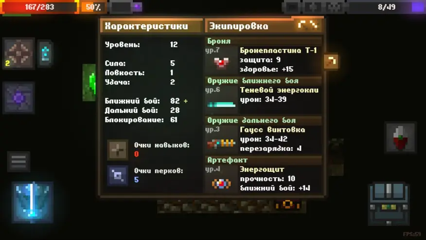 Caves вышла в RuStore 07.09.2023, также находится в процессе развития. Самое свежее обновление 0.95.3.5 от 02.06.2025, где добавлены умный режим боковой панели инвентаря, запоминающий последние использованные предметы и снаряжение, а также новое оружие, артефакты, перк, улучшены некоторые перки, генерация пещер, визуальные эффекты, новые анимации интерфейса, обновлено меню настроек и другие доработки. Короче, проект активно развивается. Платформы Android. Жанр экшн, рогалик. Прохождение бесплатное с просмотром рекламы. Отключить рекламу можно за 100р. Локализована на русский язык. В Google Play у игры свыше миллиона пользователей, тридцать одна тысяча комментариев с очень положительными отзывами. В сеттинге сочетается магия и технологии, представлено оружие разных периодов, от меча и лука до плазменной пушки.