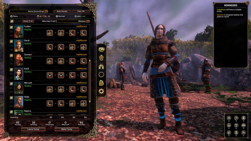 Жители поселения обладают уникальными чертами и навыками, которые влияют на их эффективность в разных видах деятельности. Одни хороши в охоте, другие — в ремесле или торговле. Постепенно поселение будет расти: к вам придут новые жители, появятся семьи и дети. Чтобы поддерживать экономику, можно торговать с соседними деревнями, отправляя корабли с товарами, или снаряжать боевые отряды для набегов на другие поселения, добывая золото и славу.