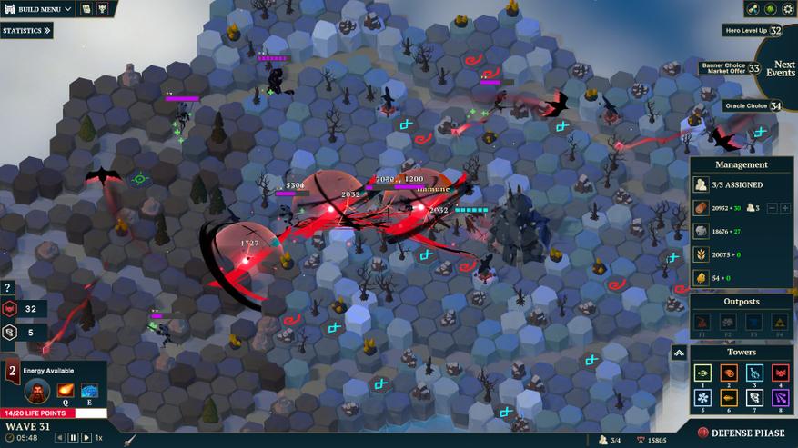 Герои с особыми навыками, реликвии с экономическими бонусами и мощные заклинания помогают справляться с испытаниями. Более 100 модификаций обеспечивают глубокую стратегическую гибкость и позволяют создавать бесконечные комбинации для защиты своего королевства.