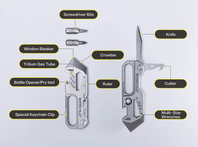 Оказаться в непредвиденной ситуации совсем без инструмента в кармане — худший вариант. Поэтому так популярны небольшие EDC-мультитулы, которые можно носить в кармане или на связке ключей. Понятно, что для полноценной работы они не предназначены, а в качестве аварийного варианта могут помочь. Стартап из Гонконга представил свое видение такого универсального помощника на краундфайдинговой платформе. Инструмент Sharp Hill выполнен из титанового сплава и объединяет в себе 11 функций при массе в 75 г.