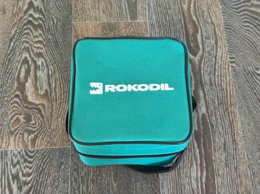 Открыв коробку, видим темно-зелёную тканевую сумку (на фото выглядит светлее) с плотным поролоновым наполнителем внутри. Сверху прочная ручка для переноски и фирменная надпись Rokodil. Сумка также выполнена в форме квадрата. (Размеры 18 на 17 см.)