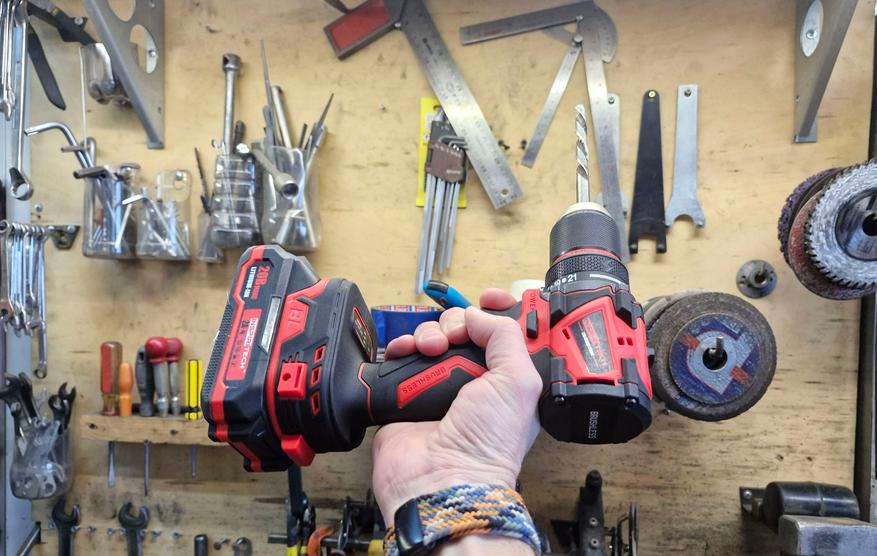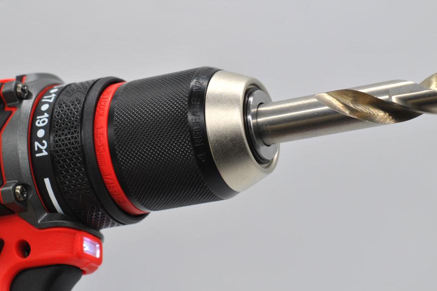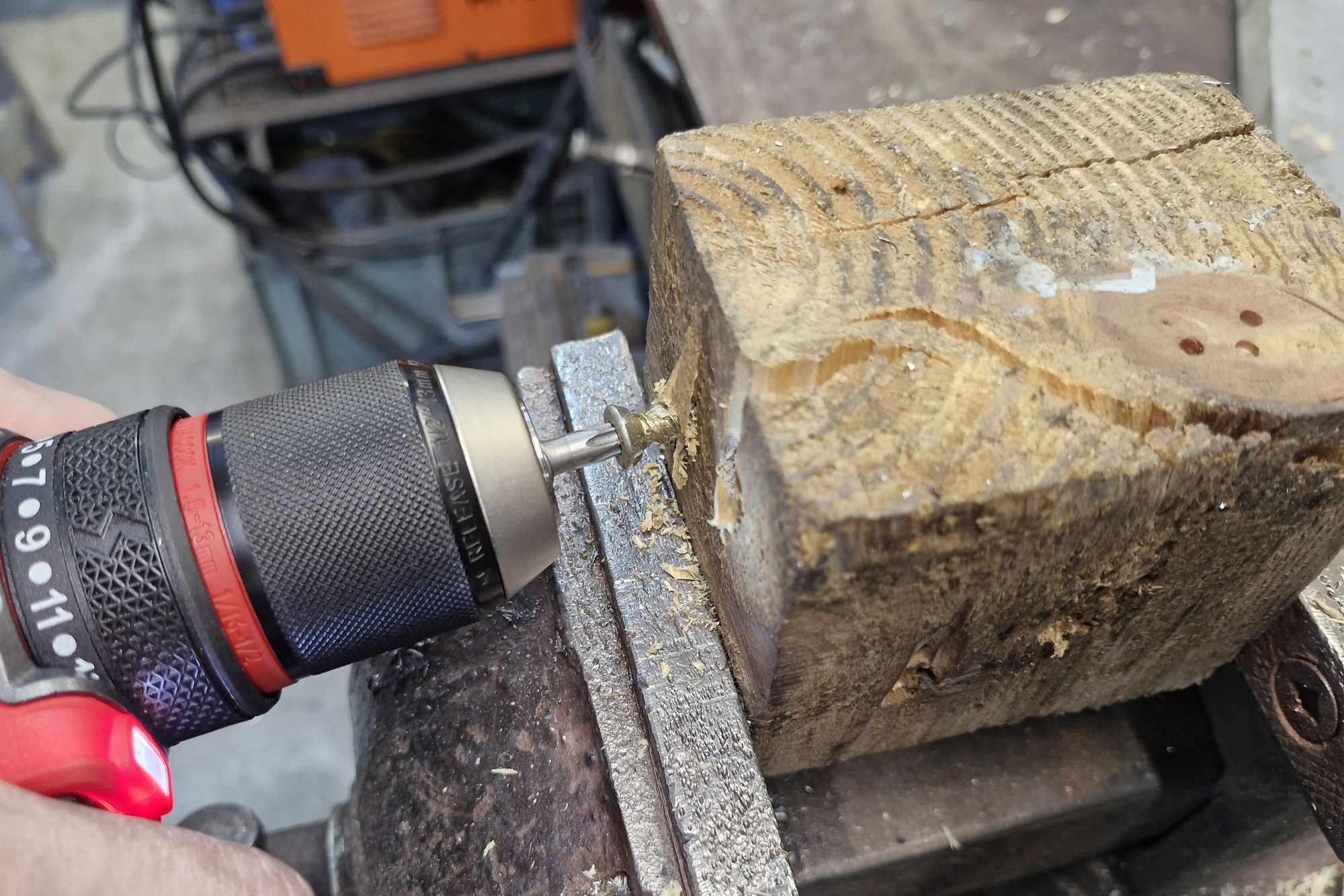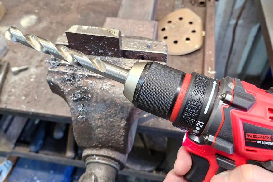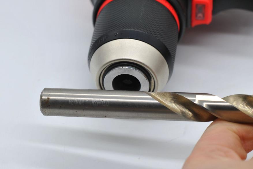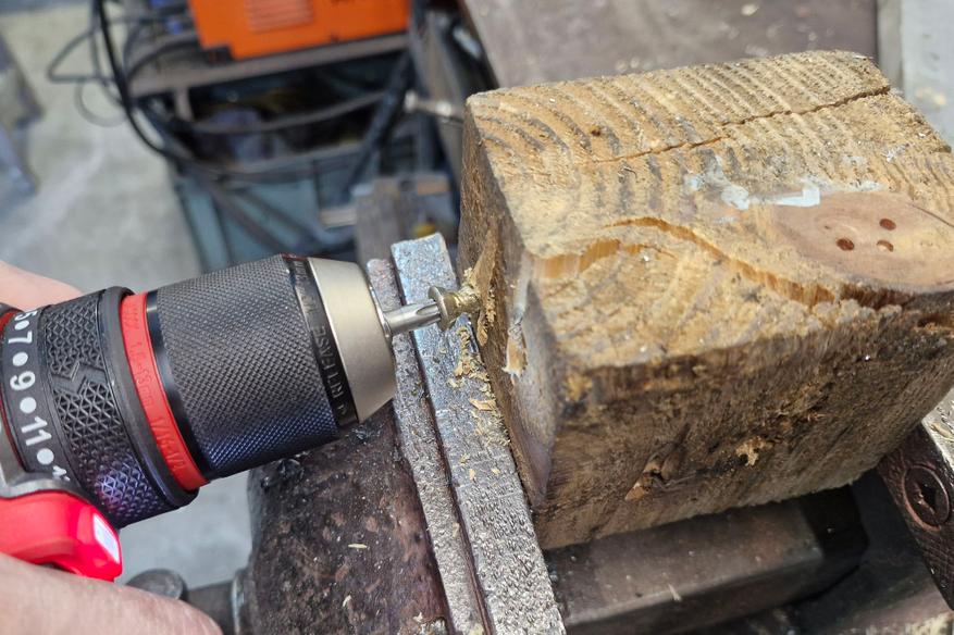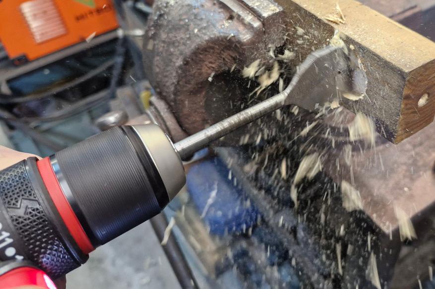 Высокий крутящий момент полезен в сверлении, проверим это на металле (сверлом 13 мм) и древесине с перьевым сверлом.