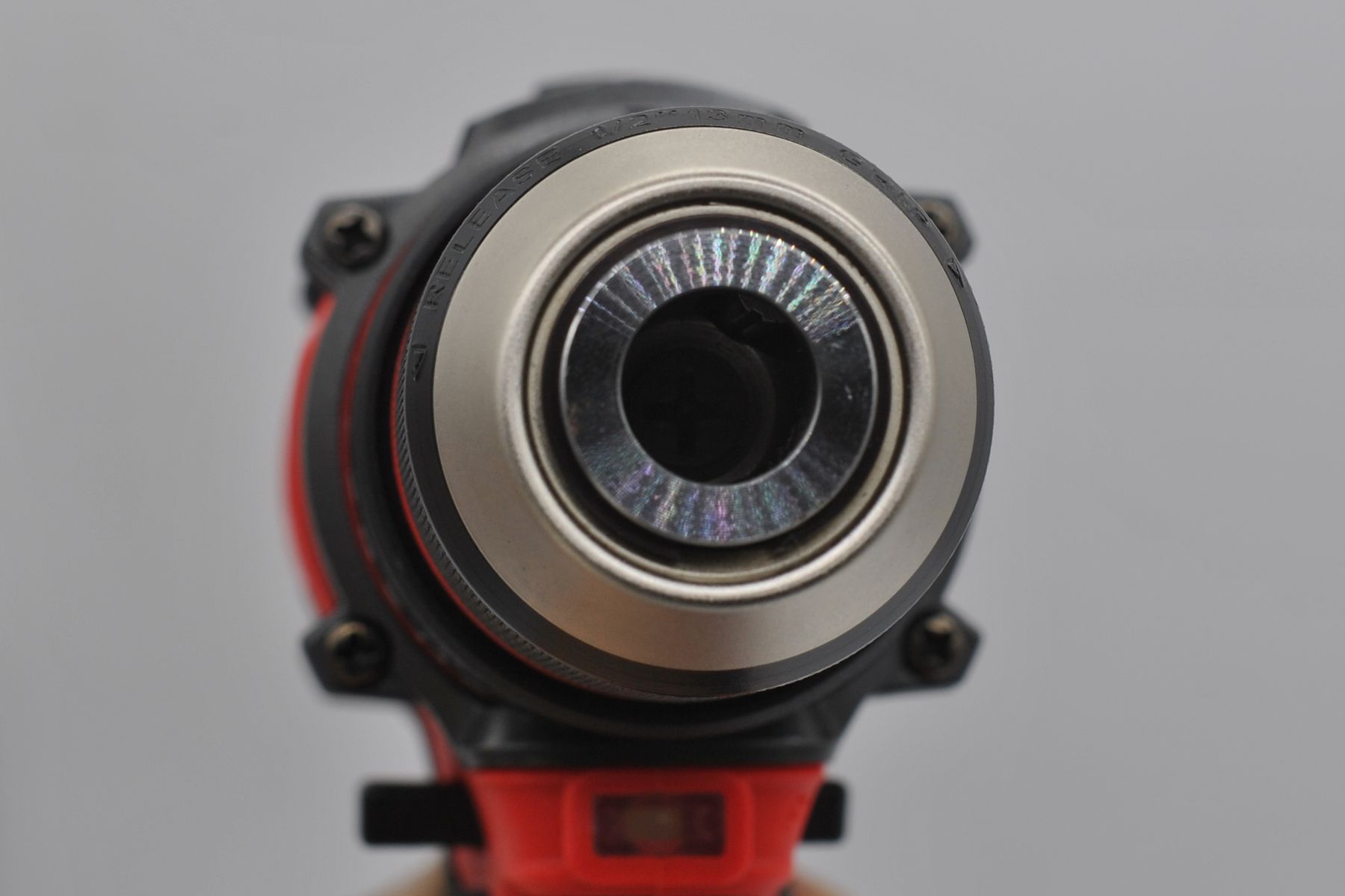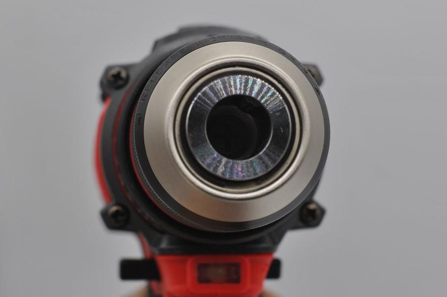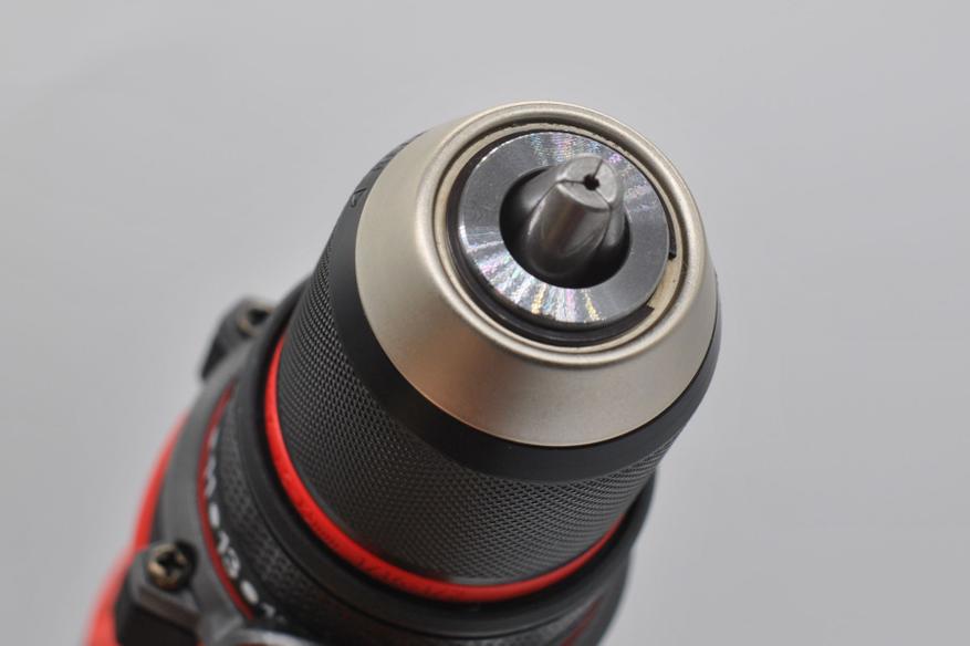 Рассмотрим патрон, он тут металлический с накаткой, естественно быстрозажимной, и что особенно удобно — имеется блокировка шпинделя патрона (ускоряет смену оснастки и можно довернуть крепеж руками).