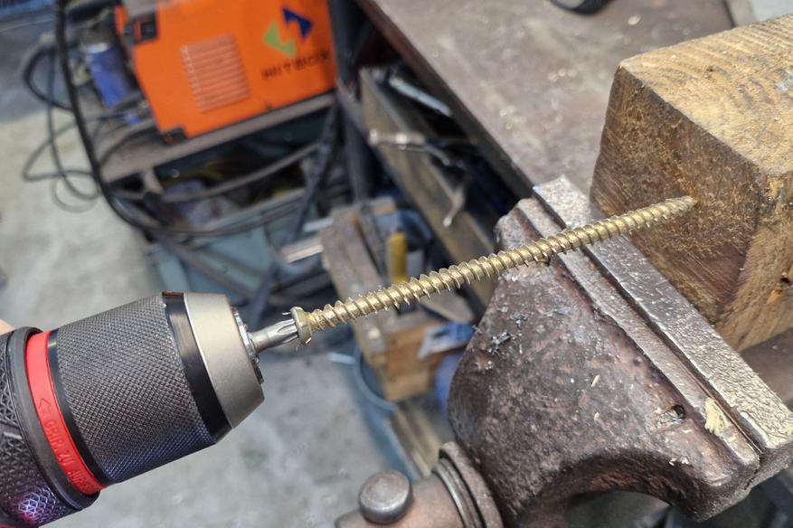 А как же саморезы? Чтобы не размениваться на мелочи, возьмем длинный конструкционный саморез 6 мм в диаметре: