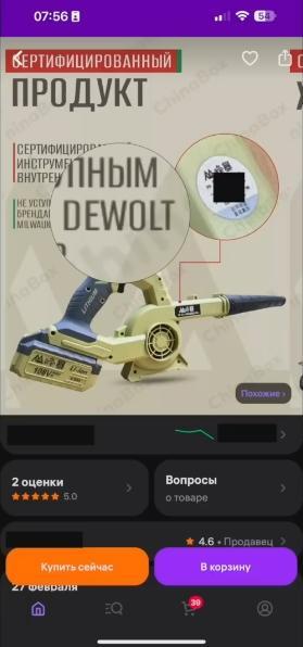 Или воздуходувка, которая, как написано мелким шрифтом, «не уступает Makita, DeWalt, Milwaukee». Бедный DeWalt, попал под раздачу.
