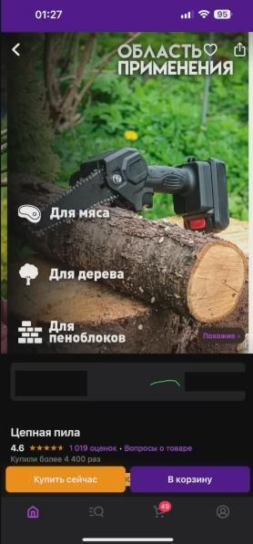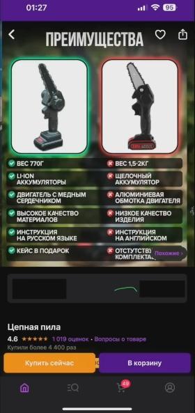 Но дальше — больше. Продавец утверждает, что пила подходит для разных задач, включая резку мяса. Ну, теоретически, конечно, возможно, но ассоциации возникают с фильмами ужасов. А затем начинаются сравнения с конкурентами, которые, по сути, ничем не отличаются от предлагаемого товара.