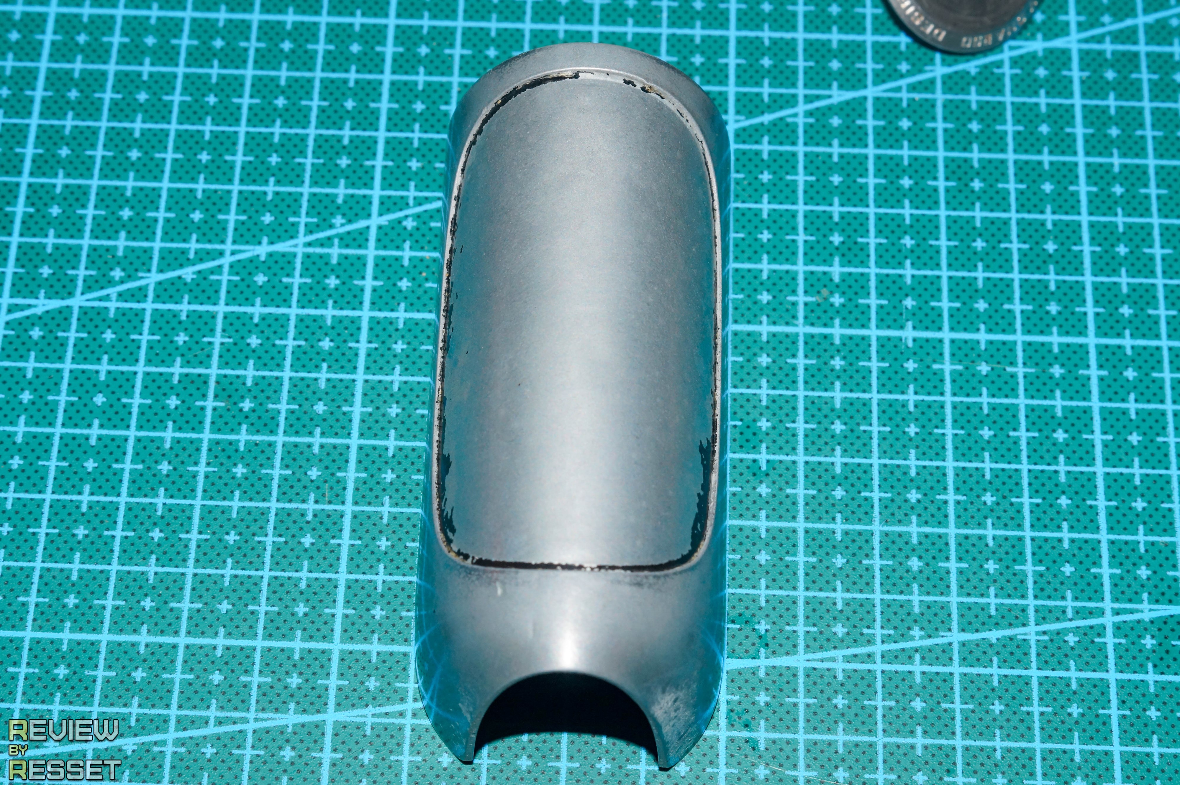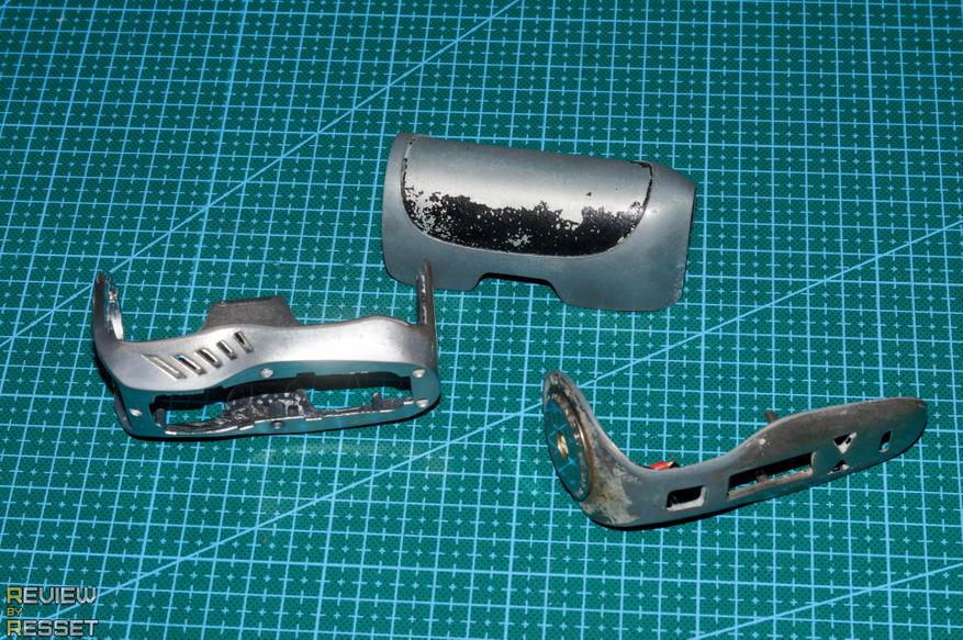 Практически весь налёт стёрт, правда в некоторых местах остались рытвины, настолько он въелся в алюминий. Хуже обработались участки, на которых сохранился заводской лак, ну и вокруг выпирающих деталей.