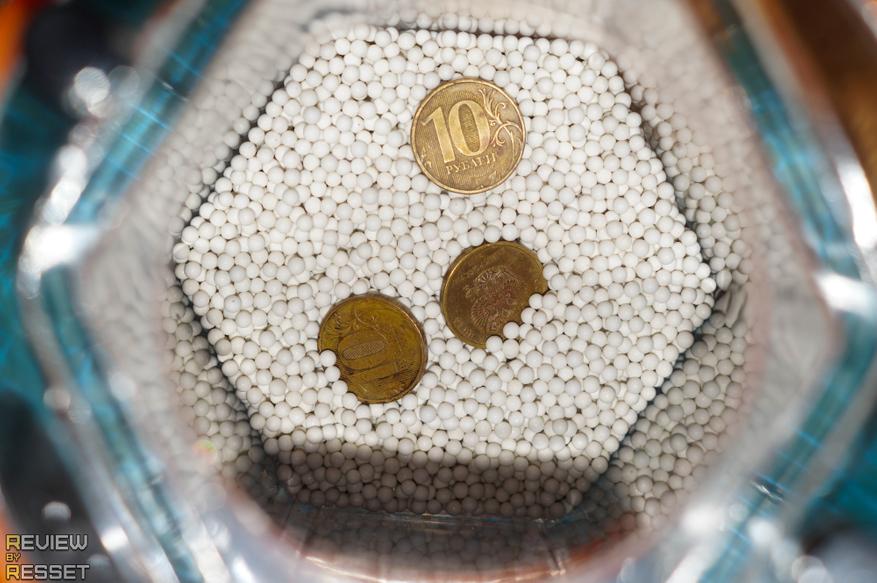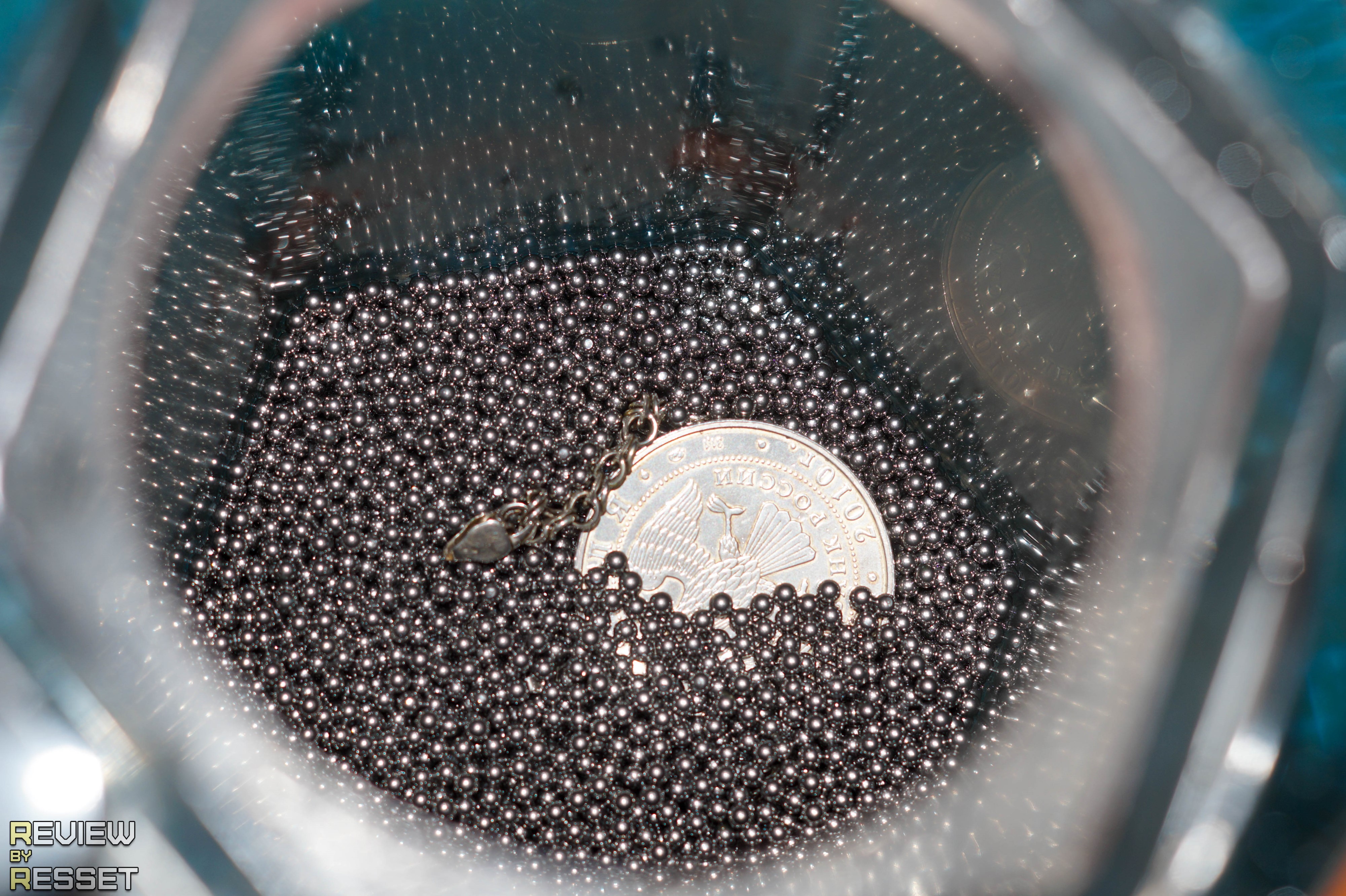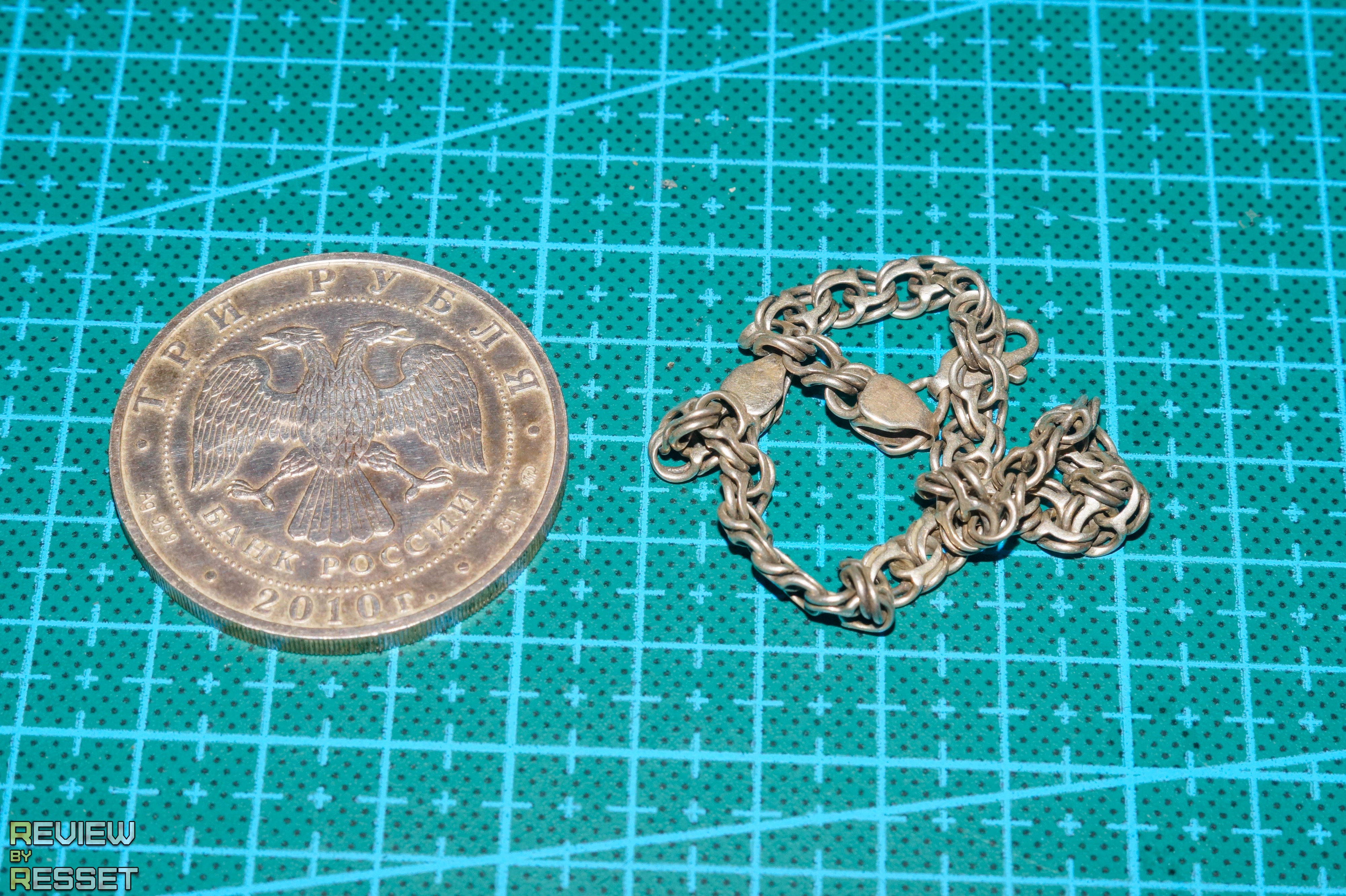 У меня давно валяется серебряная монета, которую банк впарил, когда я брал свой первый кредит на автомобиль, так же нашел старую цепочку, у которой порвался замок. По состоянию видно, что ими очень давно не пользовались. Закинул стальные шарики, но таймер поставил на полчаса.