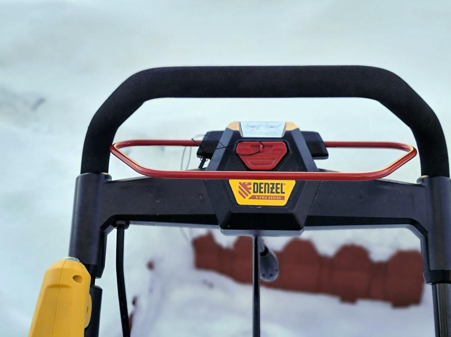 Внешний вид снегоочистителя Denzel напоминает больших «собратьев» — как то мощные сетевые или бензиновые модели. Только он гораздо компактнее и легче.