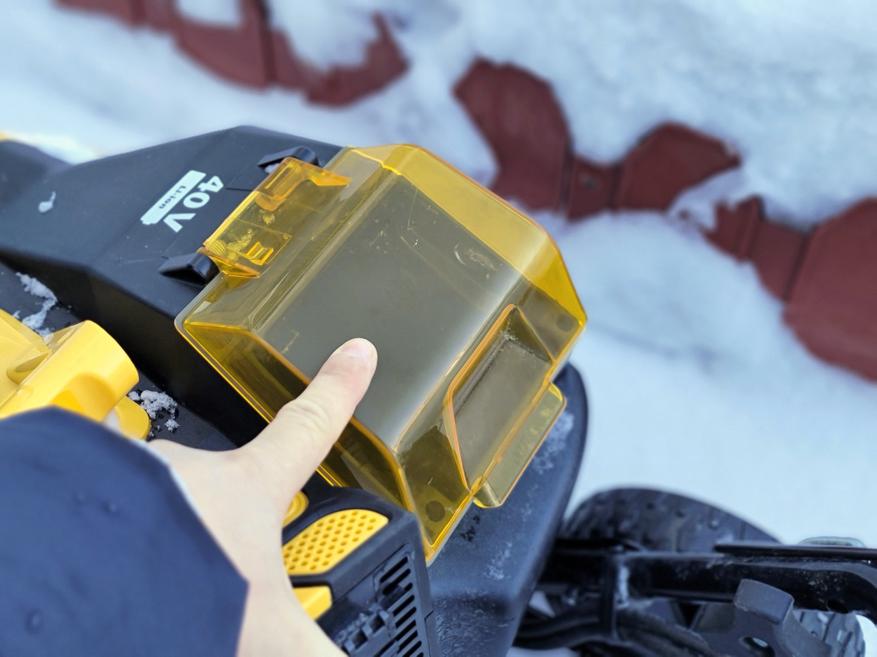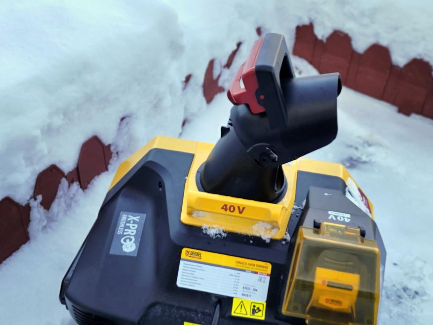 Что касается штатного аккумулятора, который поставляется в комплекте с снегоочистителем, то ёмкость составляет 4 Ач, рабочее напряжение 40 Вольт.