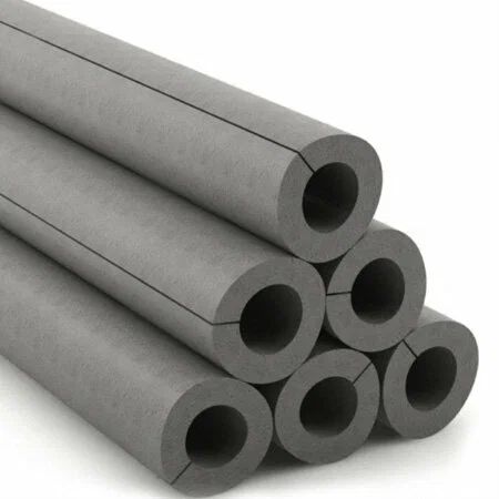 - Вспененный полиэтилен. Продаётся в виде рулонов или трубок. Для наиболее эффективной теплоизоляции рекомендуется применять полиэтилен с фольгированным внешним слоем, чтобы предотвратить попадание влаги под слой утеплителя. Трубки из полиэтилена обычно разрезают и приматывают промышленным скотчем.