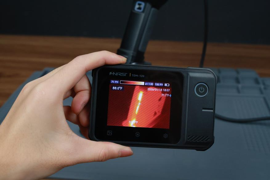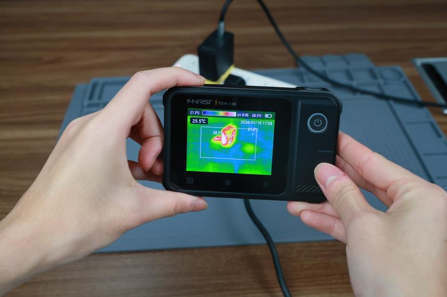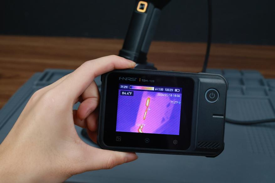 Разрешение матрицы 120 на 90 пикселей, честная частота 25 Герц и чувствительность <60mK позволяют заметить малейший перегрев элемента платы или утечку в теплом полу задолго до серьезной аварии. А с диапазоном от минус 20 до плюс 400 градусов по Цельсию ему по зубам и ревизия морозильной камеры, и диагностика выхлопного коллектора. Производитель заявляет честные +-2%, а встроенные алгоритмы сами подсветят вам горячие и холодные точки, включив сигнал тревоги, если что-то пошло не так. Картинка выводится на 2.8-дюймовый сенсорный экран с семью палитрами на выбор, снимки можно сохранять и экспортировать в ПК для дальнейшего анализа. И да, это по-прежнему карманный автономный гаджет с зарядкой от Type-C, который не попросится в розетку в самый неподходящий момент полевого выезда.