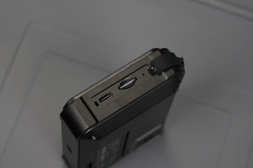 На правой грани под резиновой заглушкой спрятан слот microSD и Type-C разъем для зарядки и передачи данных. При этом кнопка выключения играет роль индикатора.