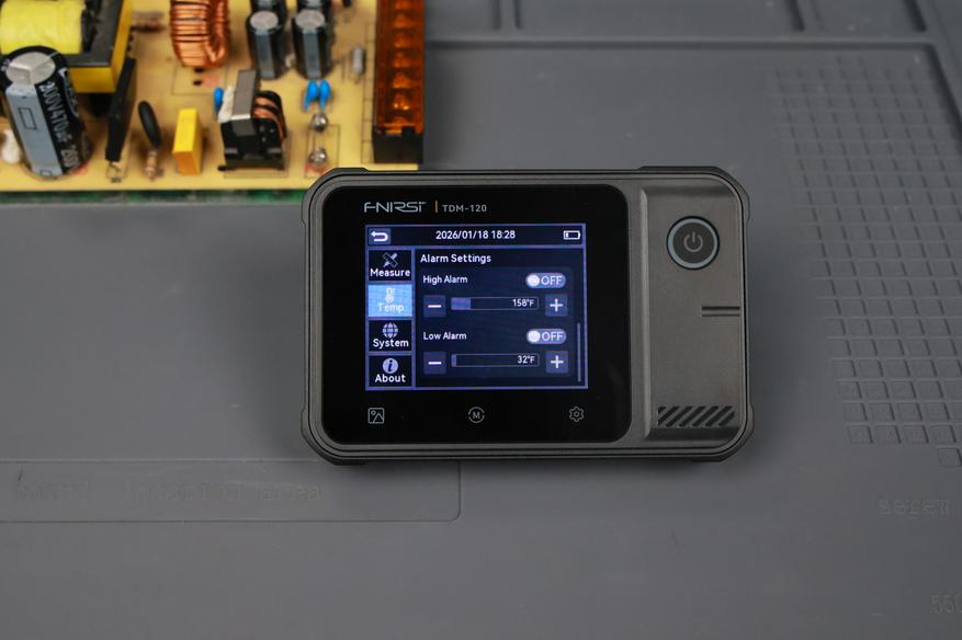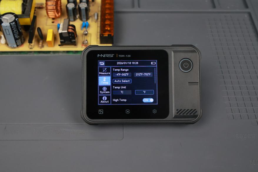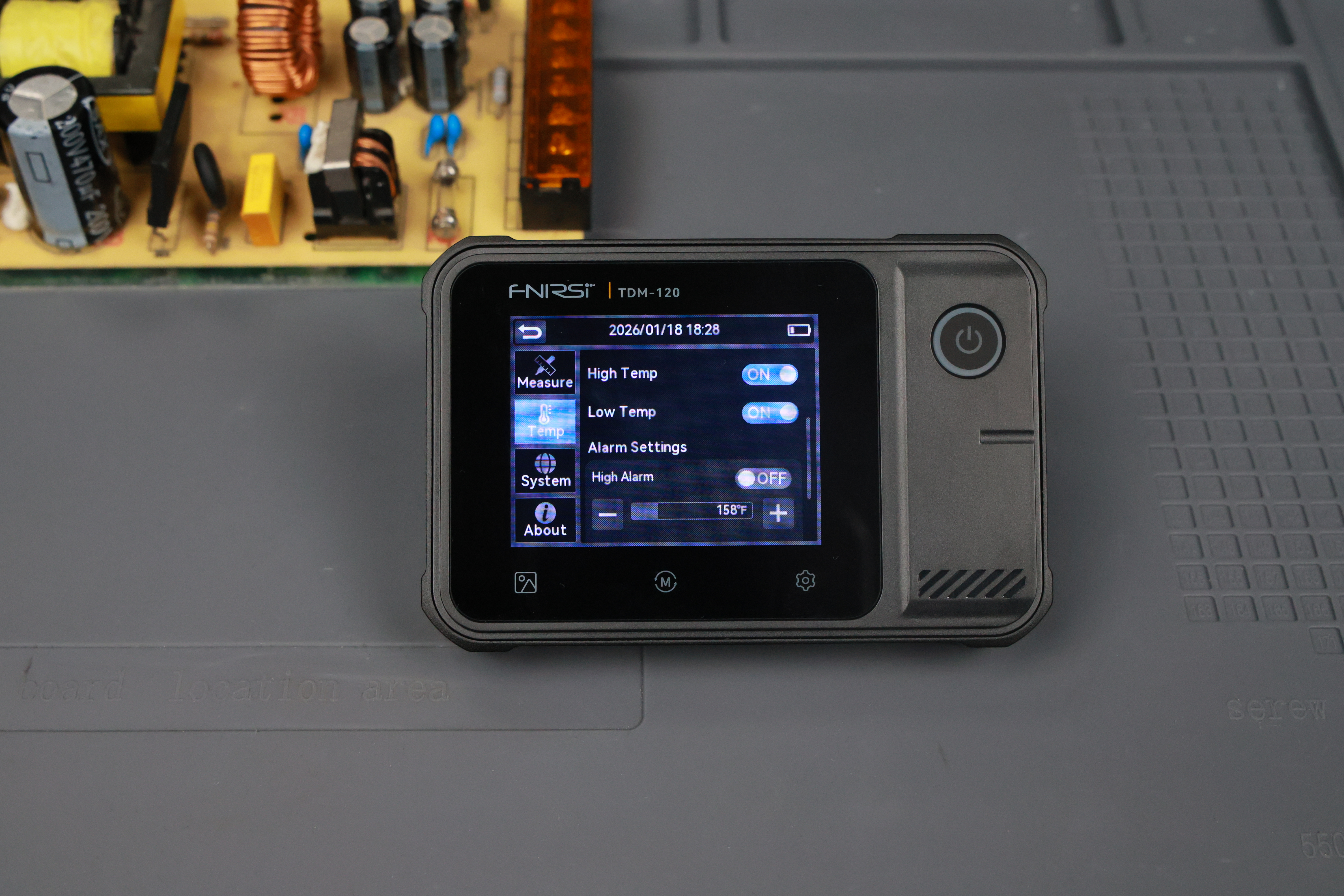 Во второй выбирается рабочий диапазон от -20°C до 150°C или от 100°C до 400°C и единицы измерения. Тут же можно включить отображение минимума/максимума и активировать предупреждение при достижения выбранного нижнего или верхнего предела температуры.