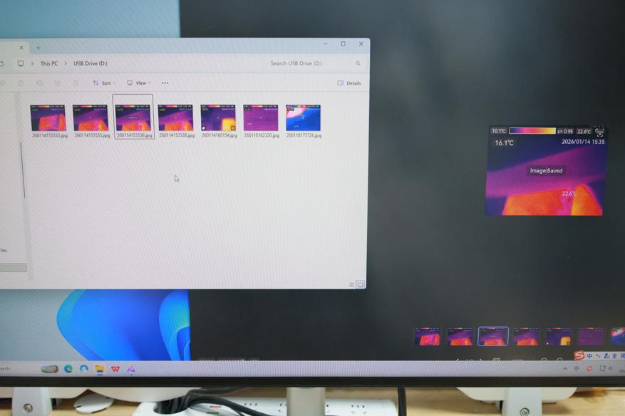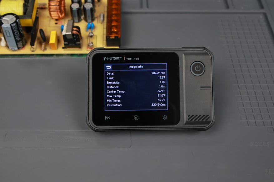 Сохраненные картинки можно просматривать на экране тепловизора, выводятся и параметры съемки.