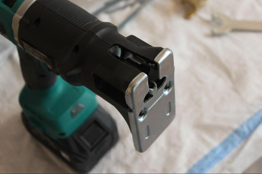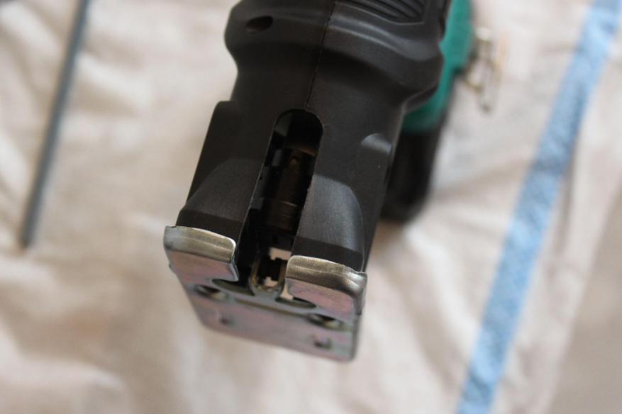 Модуль лобзика обладает ходом пилки 12,7 мм и частотой до 2700 ходов в минуту. Он использует пилки с самым распространенным Т-образным хвостовиком, которые меняются без ключа. Укладка SPC-ламината, который легко режется канцелярским ножом, обошлась без его участия.