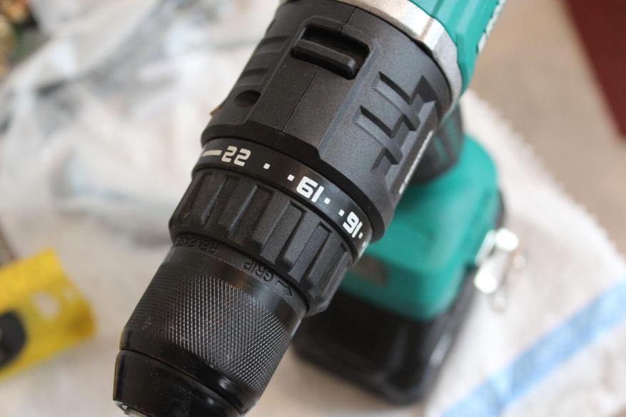 Быстрозажимной патрон под сверла до 13 мм (что редкость, так как у многих конкурентов 10 мм) удобен в использовании. Две скорости редуктора (0-400 и 400-1600 об/мин) и муфта с 22 положениями крутящего момента позволяют гибко подходить к разным задачам.