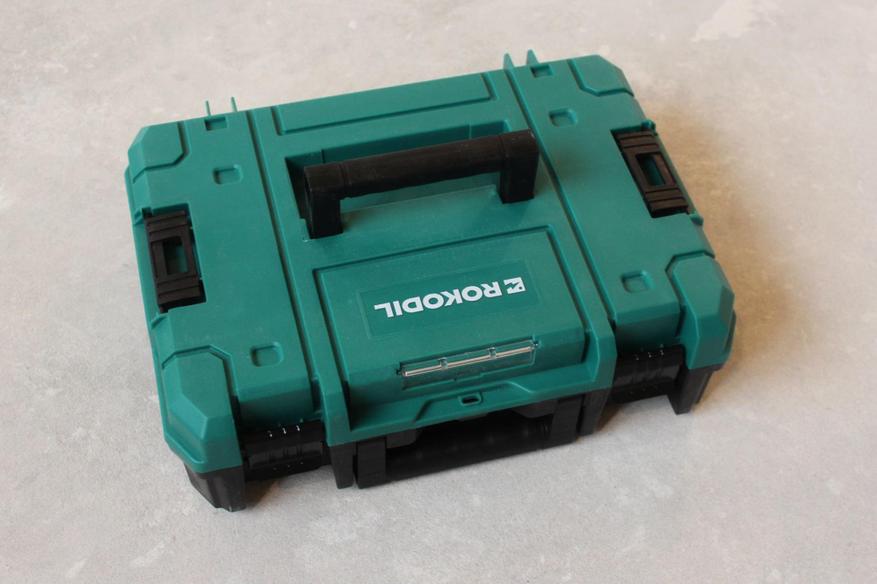 Rokodil Multivert Start поставляется в прочном пластиковом кейсе, который сам по себе производит отличное впечатление. Кейс имеет две ручки для переноса — сбоку и сверху, что очень удобно. Также предусмотрено окошко для нанесения инициалов и боковые упоры, которые, вероятно, позволяют крепить несколько кейсов друг на друге.