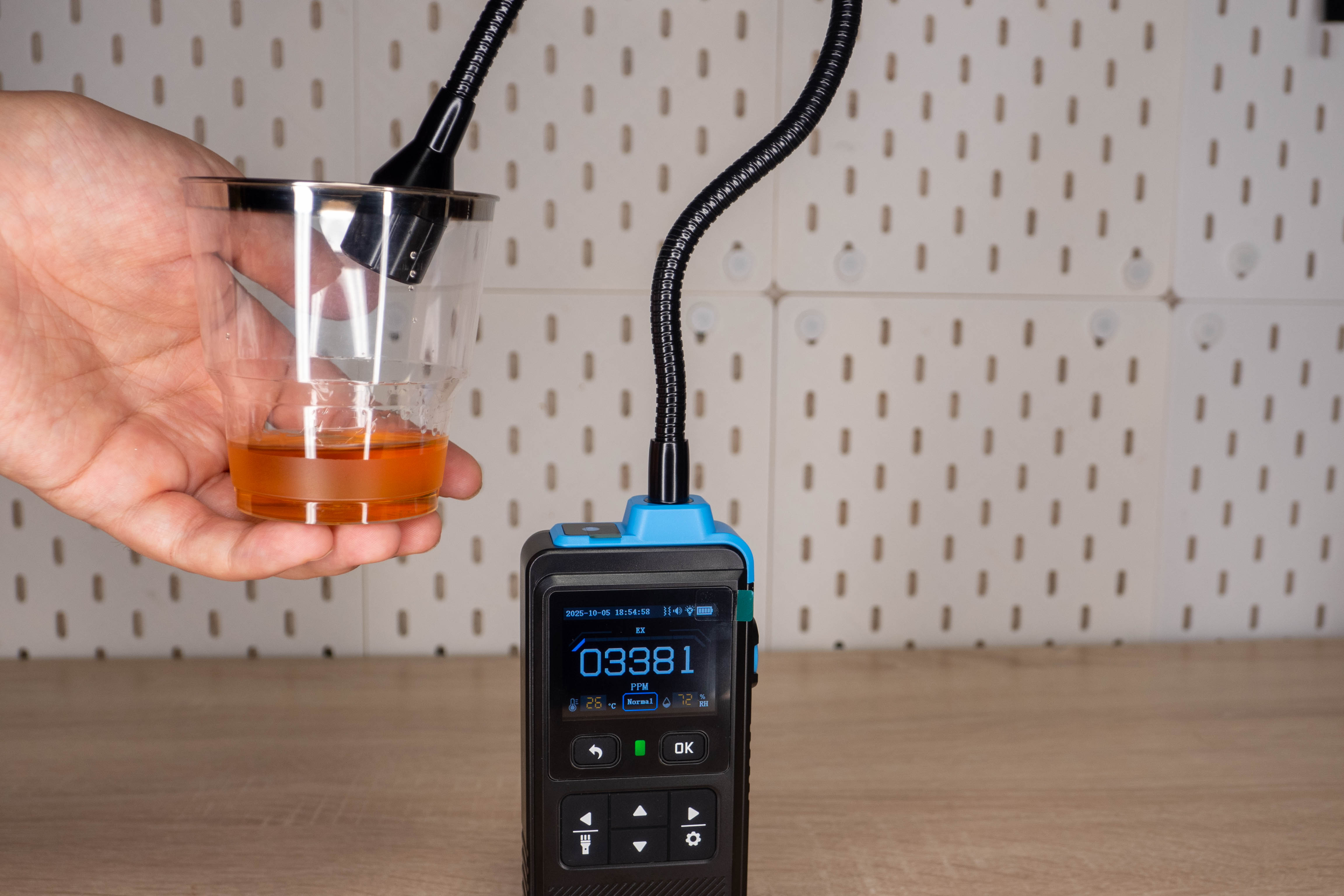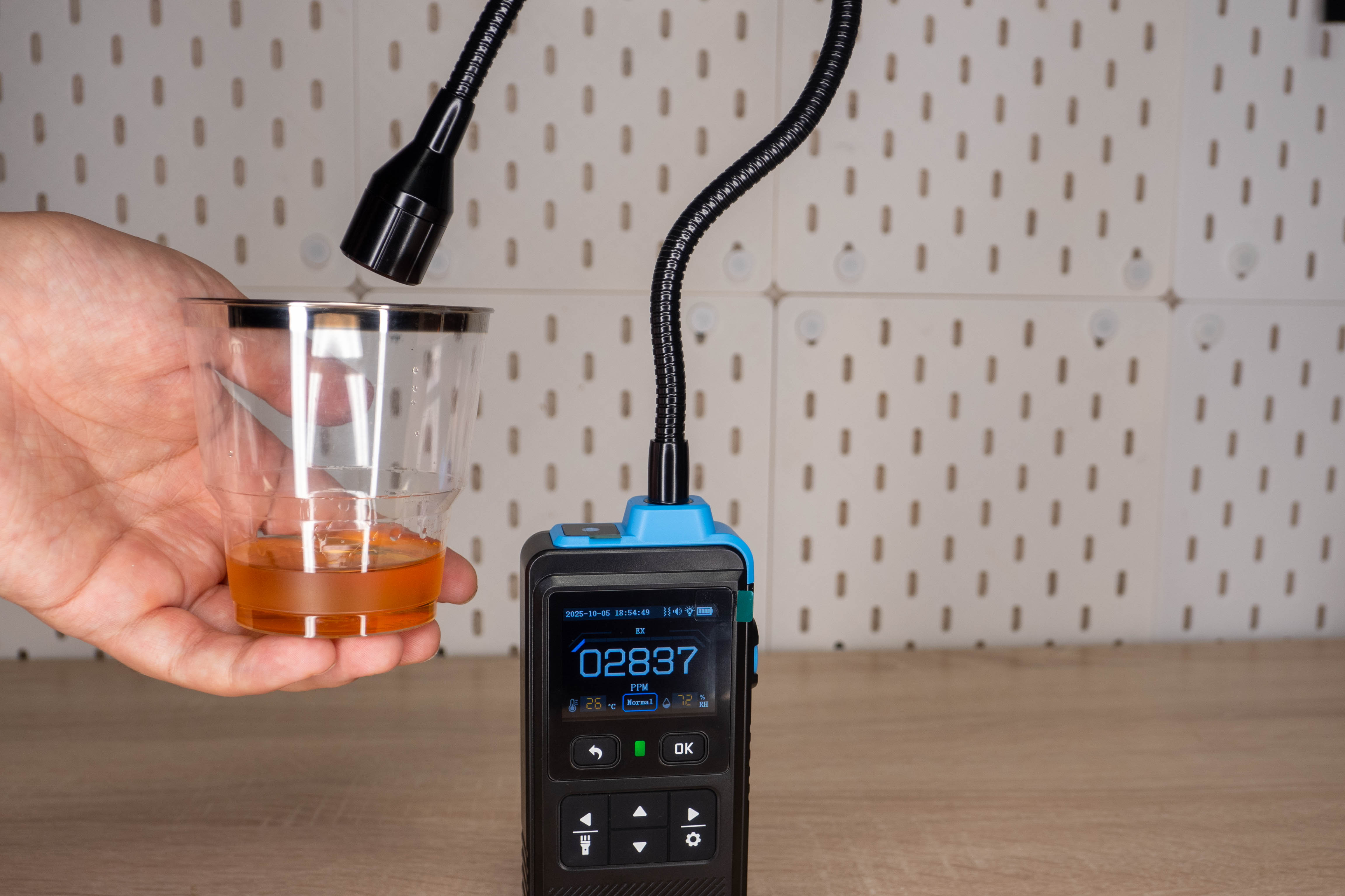 А еще датчик реагирует на пары алкоголя, правда не особо интенсивно. Если прополоскать рот спиртосодержащим составом, еще с полминуты на экране будет отображаться некоторая концентрация.