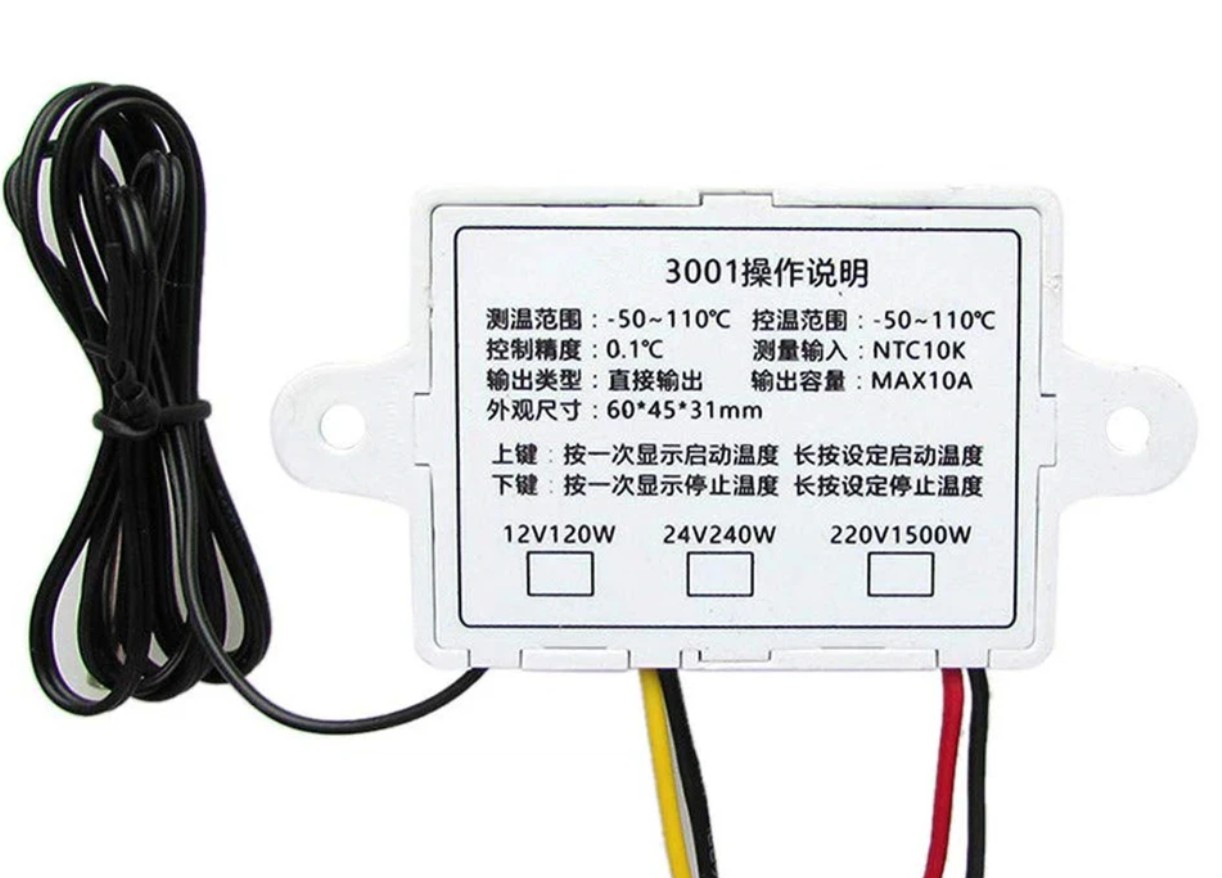 Типовое применение вот такого регулятора температуры XH-W3001 — это подогрев воды в аквариуме. Ну как для аквариума — вообще подогрев в пределах 100 градусов. Мощности небольшие, так что если требуется серьезная нагрузка, то имеет смысл использовать внешнее реле/пускатель или же просто взять более мощный контроллер. Для моего же случая подобного регулятора температуры XH-W3001 более чем достаточно.