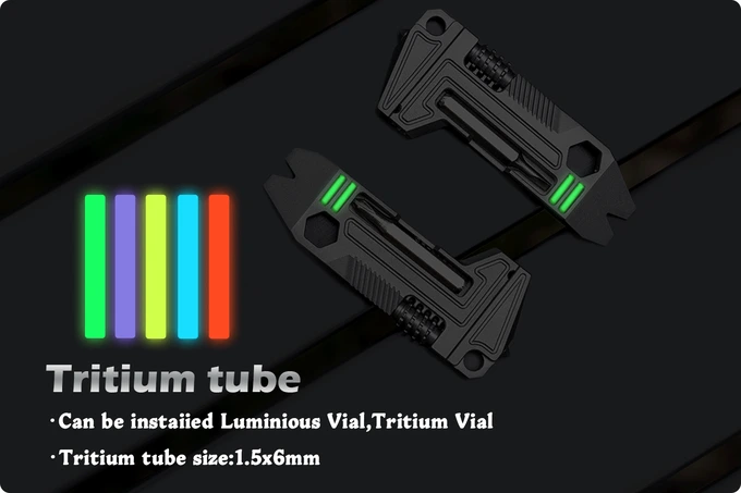 В этой же части корпуса есть 2 посадочных места под светящиеся колбочки. И тут пользователю доступен выбор из двух источников света. Первый и более дорогой, популярный среди EDC-энтузиастов разноцветный радиоактивный газ тритий, который может светиться годами (ещё один пример мультитула с такими колбочками ниже в блоке «об авторе»). Второй и более доступный — классические фосфоресцирующей колбочки.